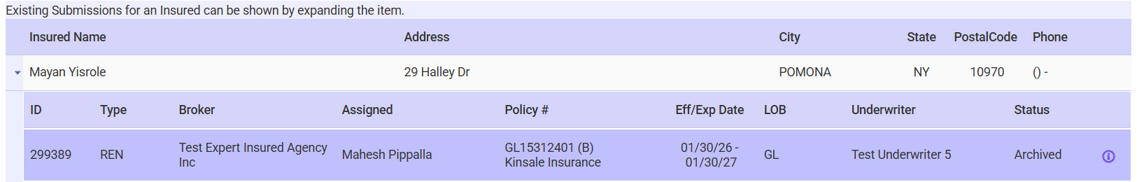 - Expand the insured’s section >> Double-click on the applicable policy (check the policy number, term, etc.).