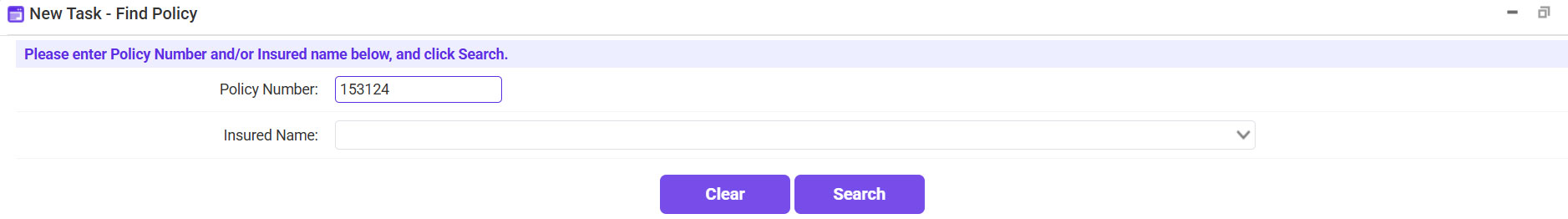 - Enter the policy number or insured’s name >> Click Search.
