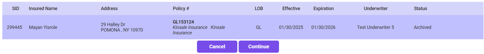- Select the applicable policy >> Click Continue.
