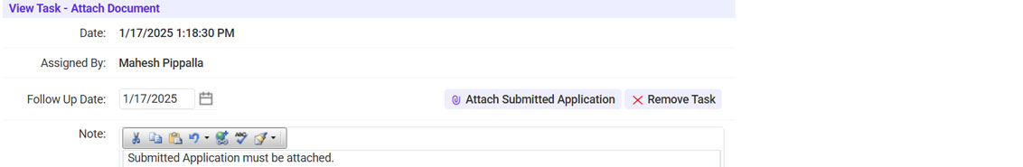 - Click on the Attach Submitted Application link.