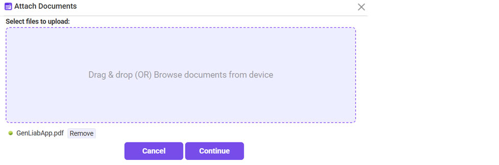 - Click Browse >> Select the application >> Once it is attached, click Continue.
